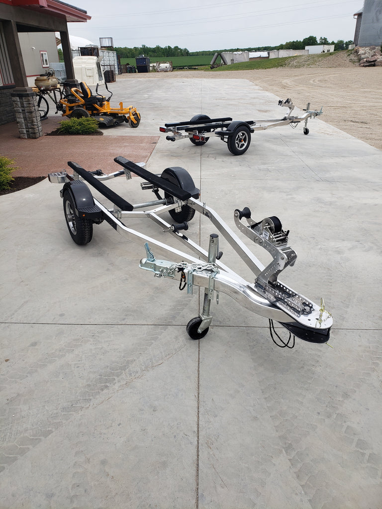 The "NEW" Ultimate XT is our next generation 2N1 Trailer. It still has the great features and conveniences of the "Ultimate Original" but takes it to the next level! We have been listening to our customers over the past 12 years and have come up with a superior PWC trailer. The XT "does it all". It's All aluminum construction delivers stunning looks and it's lightweight too! We offer a standard acid washed finish but you can also "Bling it up" with a Super Shiny polished finish. This trailer won't disappoint. Not only is it infinitely adjustable, it comes standard with a swing-away tongue, Mag wheels, Radial tires and Sealed LED Lighting. With your machine 6" closer to the water than our previous version it truly is the "ULTIMATE SINGLE"